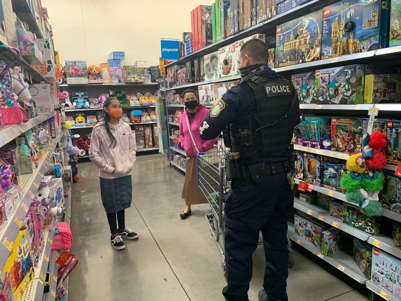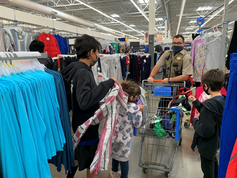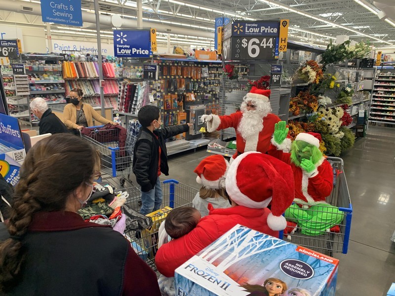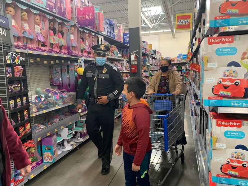 Robert Parra is the President of the FOP for the state of New Mexico and city of Las Cruces FOP Lodge #8. President Parra rounded up members from the FOP Lodge #8 and volunteers from Walmart and staff from the Federal Programs department at Las Cruces Public Schools to identify and shop for students that need extra support this holiday season. The Las Cruces Fire Department escorted Santa Claus and the Grinch on their fire truck to greet students and their families outside Walmart before the shopping began. Students who participated in the event were partnered with a law enforcement officer who helped them shop for Christmas gifts. Each student received $100 to spend on clothing and toys of their choice this holiday season.