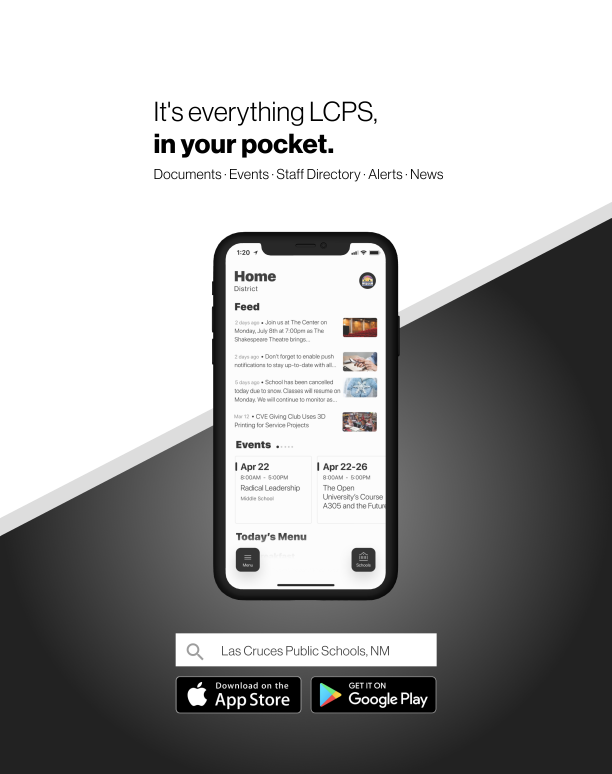 Las Cruces School District has launched a new mobile app that helps students, parents, and community members know what is happening on campus, right from their phones. We know that families are using smartphones as a primary means to communicate. That is why we have created an app that is custom-built for mobile devices. On the app, you can find documents, contact information for staff, and event information.