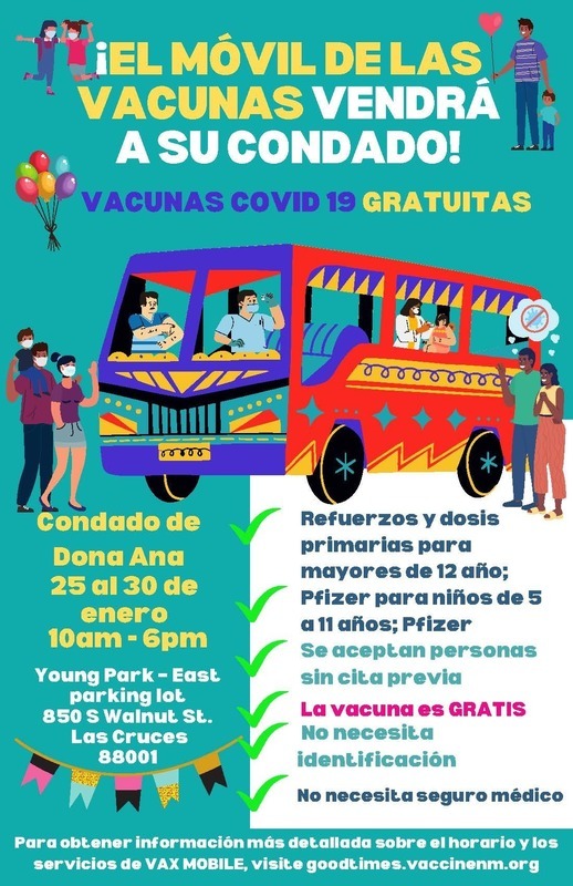 VaxMobile has arrived to Dona Ana County. Getting a COVID-19 Vaccine is fast, effective, and in your community.