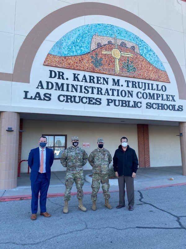 Two New Mexico National Guard soldiers reported for duty at Las Cruces Public Schools Monday. Their current assignment is to fill in as substitute teachers while the district continues to onboard qualified applicants.  PFC Brannan Artman and SPC Mario Meraz volunteered to serve LCPS as substitute teachers as part of the Supporting Teachers and Families initiative to help fill in as teacher vacancies rise due to COVID-19.