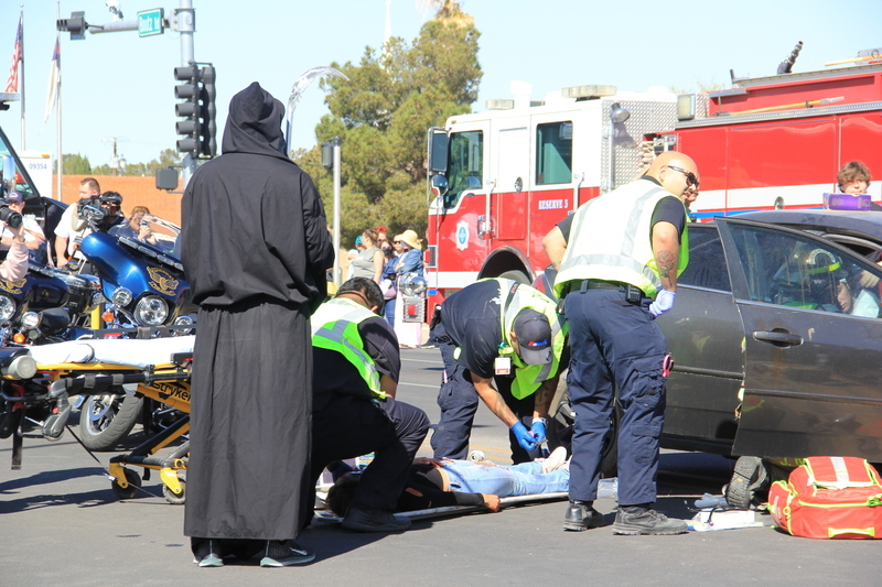 While the crash is being staged Thursday morning, several volunteers dressed as the Grim Reaper will visit various classrooms at the school, tapping the shoulders of students picked from a cross-section of the entire student body. The selected students represent teens who are killed in alcohol-related crashes, and the strategy is to ensure each population within the school is represented. A member of law enforcement will then enter the classroom and read an obituary prepared by the student’s loved ones as part of the simulation.