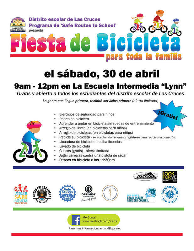 The Las Cruces Public Schools’ Safe Routes to School Program will offer a bicycle education event at Lynn Community Middle School from 9 a.m. to noon on Saturday, April 30. The Family Bike Fiesta is free and open to all students in the LCPS district.