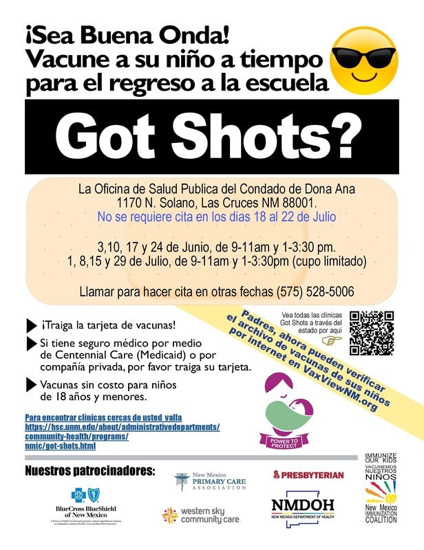 Children need to be protected against vaccine-preventable diseases. Children who are not protected by vaccines may be more likely to get diseases like measles and whooping cough. Parents should be aware that their children need to be up-to-date on their immunizations to enroll in school each year. For a listing of other clinic locations across the state visit New Mexico Immunization .