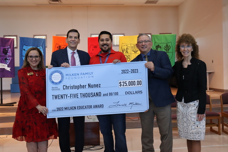 "Teaching often becomes a family affair as children grow up in homes that elevate the profession, honor the hard work it takes to be a teacher, and celebrate the gift of teaching the next generation of leaders," said Dr. Jane Foley, senior vice president of the Milken Educator Awards and a 1994 Indiana Milken Educator. "Christopher Nunez saw this firsthand in his own family. Today, we honor him for his dedication to his profession and to his students. Congratulations, Christopher!"